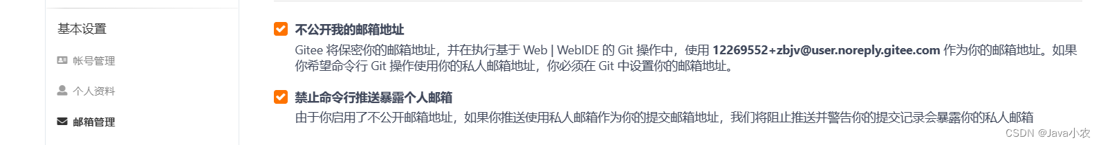 首先有可能是你的gitee账户邮箱设置为私有的,未公开,所以我们可以去Gitee上