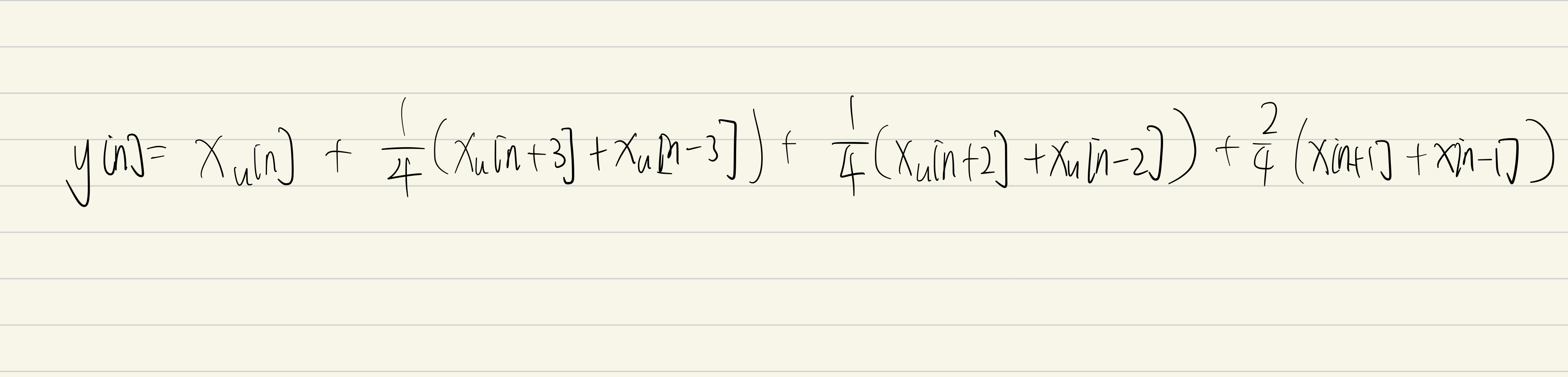 读者必须注意,这个得到的结果是根据上采样之后,插值仍然为0的 计算而来的,刚学的时候通常会疑惑,比如我从n=0一直计算到n=5,那么原本为0的插值应该有值了才对啊,这样的话不会影响到原本的值吗?但其实算法不是这样的,它是像读表一样,计算内插后的序列