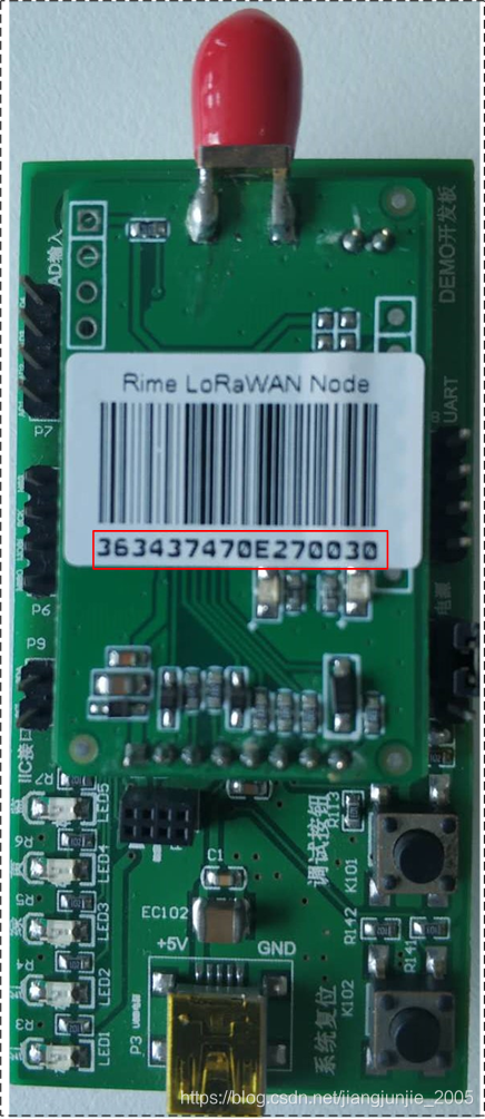 - LoRaWAN 节点 DevEUI=363437470E270030