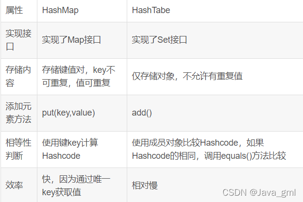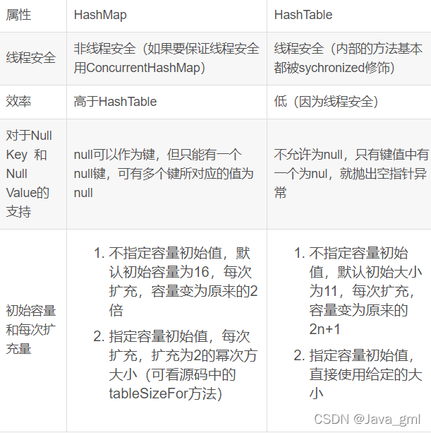 HashMap和HashTable的比较: