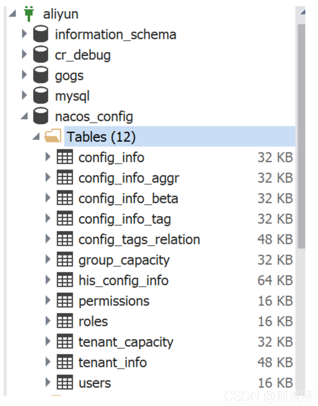 INSERT INTO roles (username, role) VALUES ('nacos', 'ROLE_ADMIN');3.2.2生成如下表
