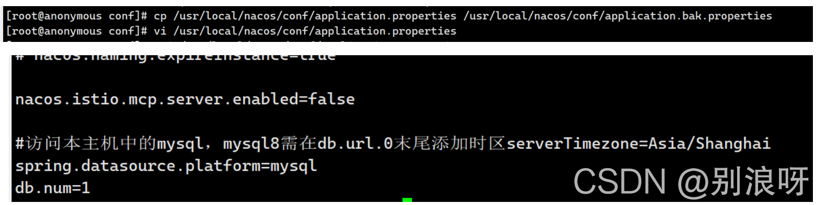 cp /usr/local/nacos/conf/application.properties /usr/local/nacos/conf/application.bak.properties