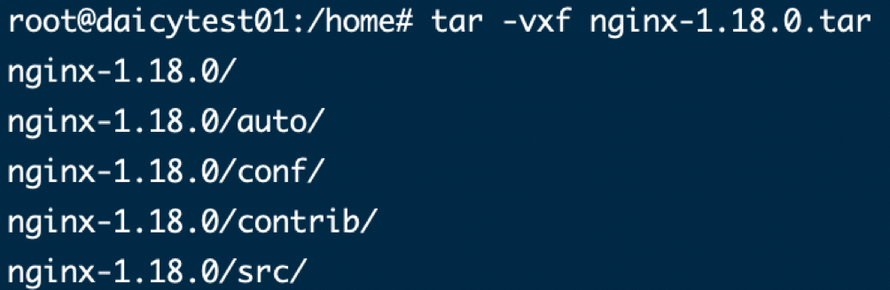 root@test01:/home# tar -vxf nginx-1.18.0.tar
