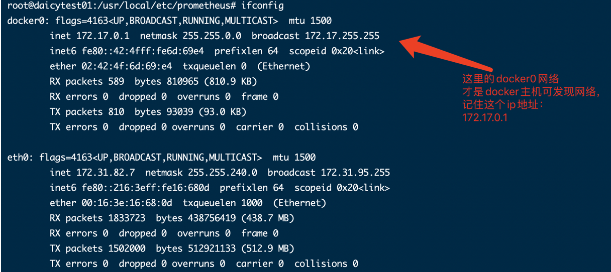 docker cp 3e63f6574354:/etc/prometheus/prometheus.yml /usr/local/etc/prometheus/prometheus.yml3.2 查看宿主机ip