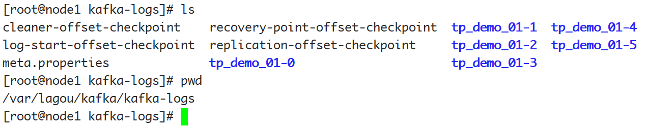 [root@node1 ~]# kafka-topics.sh --zookeeper node1:2181/myKafka --create --topic tp_demo_05 --partitions 1 --replication-factor 1 --config segment.bytes=104857600