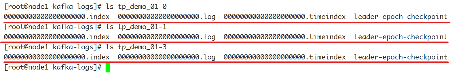查看一个topic分区目录下的内容,发现有log、index和timeindex三个文件: