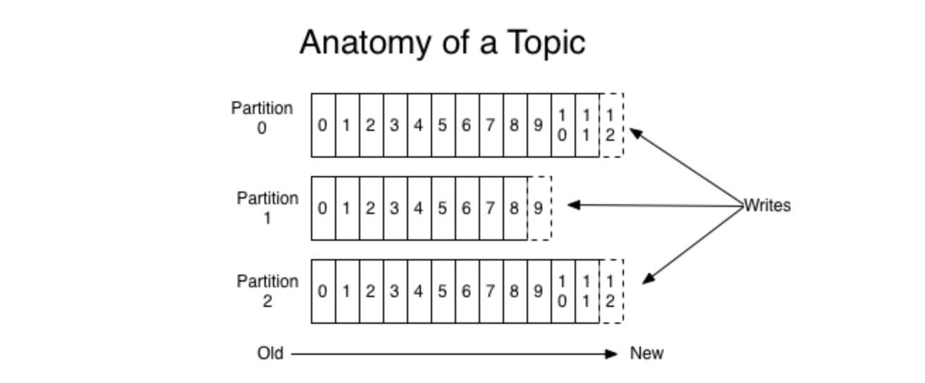 3. 一个topic的不同分区,可认为是queue,顺序写入接收到的消息。