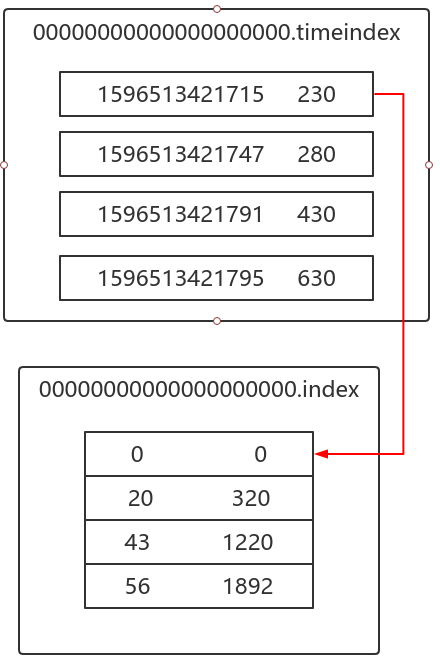 时间戳索引索引格式:前八个字节表示时间戳,后四个字节表示偏移量。