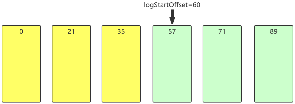 3. 日志分段 3 的下一个日志分段的起始偏移量为57,小于logStartOffset,将日志分段3加入删除集合中