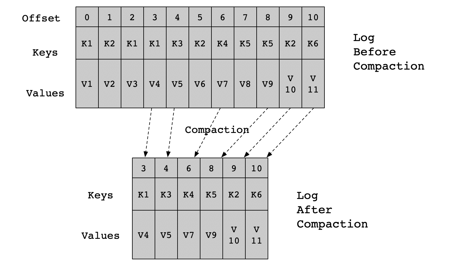 - 消息始终保持顺序,压缩永远不会重新排序消息,只是删除一些而已