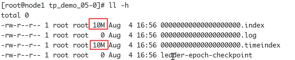 3. index和timeindex在刚使用时会分配10M的大小,当进行 log rolling 后,它会修剪为实际的大小。