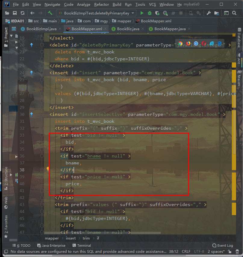 先在BookMapper.xml中将sql语句写出来
