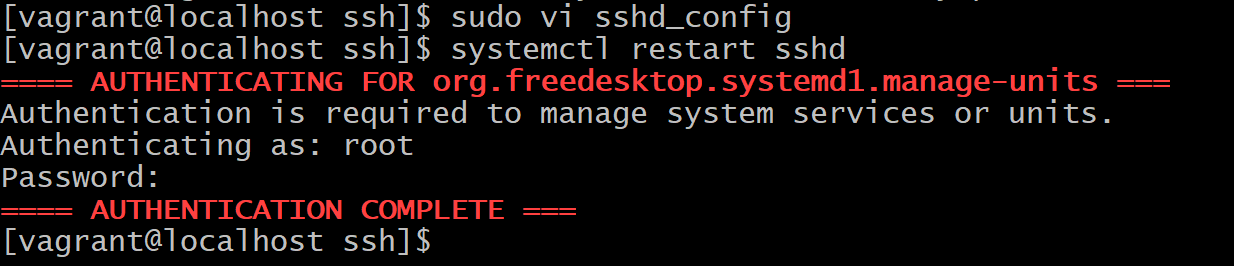 SSHD,通过systemctl restart sshd,这时候会让你输入root的密码,root账号的密码默认也是vagrant,你可以选择直接用sudo执行。