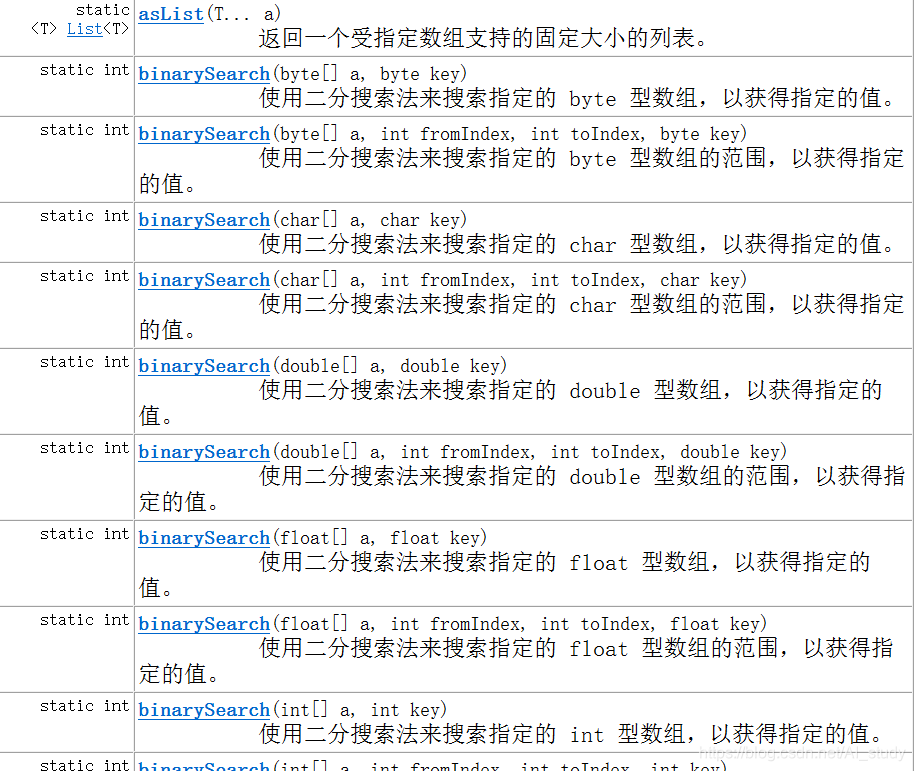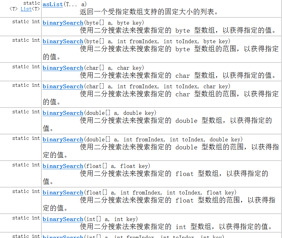 这个Arrays 里面的方法,可以看到基本都是 static。加上了static 就说明不需要对象,直接通过类名点的方法就可以使用。