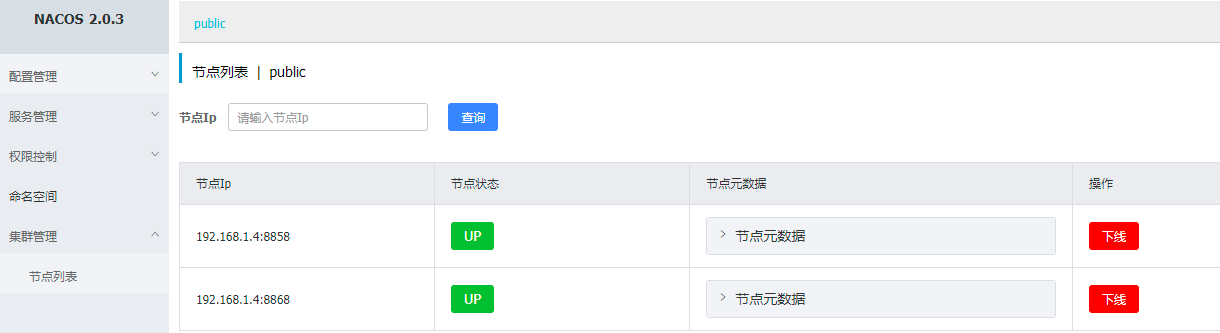 1 首先需要确保Nacos集群中的诸多节点正常启动,而且在nacos控制台里能看到如下确认集群工作正常的界面。