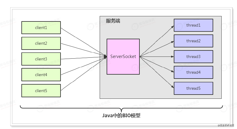 b 当连接创建后,该线程没有操作,会进行堵塞,不会释放线程。极大浪费服务器资源。2.1.2 NIO模型