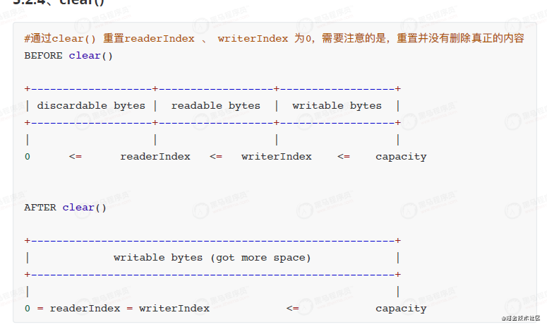 byteBuf.clear(); //重置readerIndex 、 writerIndex 为0