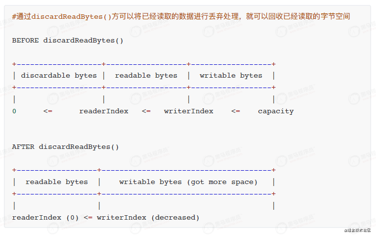 byteBuf.discardReadBytes(); //丢弃已读的字节空间