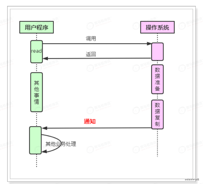 整个IO操作(包括数据准备、数据复制)完成后,通知⽤户程序,⽤户执⾏后续的业务操作。
