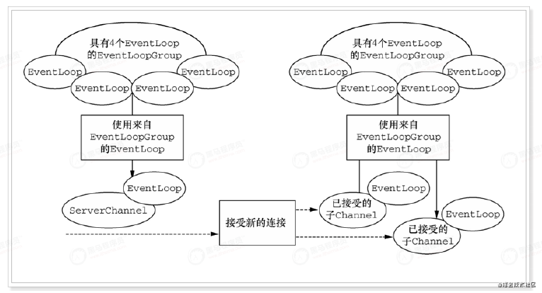 c 可复用性高 该模型和具体事件处理逻辑无关,具有很高复用性。2.2.4 Netty模型(主要是主从多线程模型)