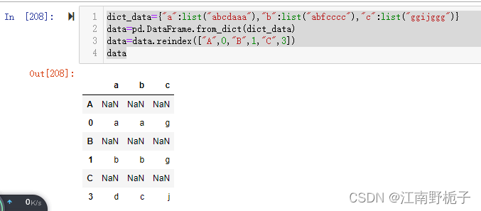 再准备的 Series 是按照 columns 的标识来的,这次代码运行后发生了数据填充,index 为 “a” 的 Series 元素 被填充到 DataFrame "a" 列 中。