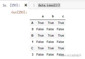 .isnull() 和 .notnull() 是一对判断对象是不是丢失数据的函数,但是可惜的是它们不区分 NaN 和 None 值,对这两者的操作结果是一样的。