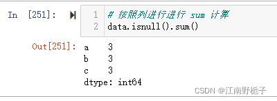 .isnul().sum() 按照列进行进行 sum 计算 NaN 数目
