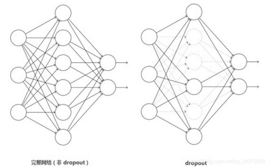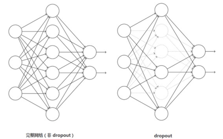 引入Dropout主要是为了防止过拟合。在神经网络中Dropout通过修改神经网络本身结构来实现,对于某一层的神经元,通过定义的概率将神经元置为0,这个神经元就不参与前向和后向传播,就如同在网络中被删除了一样,同时保持输入层与输出层神经元的个数不变,然后按照神经网络的学习方法进行参数更新。在下一次迭代中,又重新随机删除一些神经元(置为0),直至训练结束。