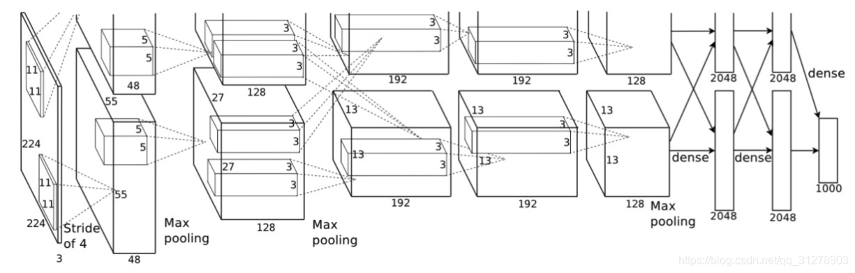 AlexNet网络结构:https://www.cnblogs.com/wangguchangqing/p/10333370.html