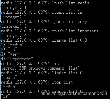 LIST结构的常见命令有:lpush、rpush表示分别将元素推入列表的左端和右端;lpop、rpop命令分别用于从列表的左端和右端弹出元素;lindex命令用于获取列表在给定位置上的一个元素;lrange命令用于获取列表在给定范围上的所有元素。以下是示例: