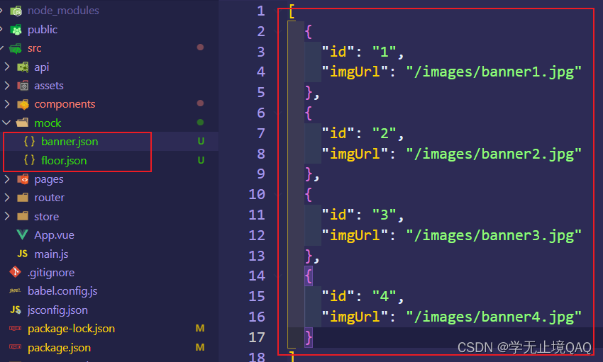创建两个文件,banner.json和floor.json,然后放入对应的数据