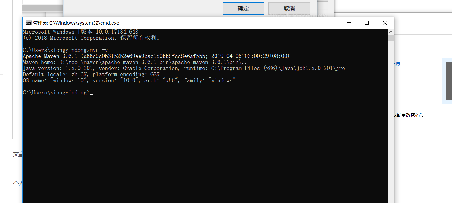5. 至此,maven已经完成了安装,我们可以通过DOS命令检查一下我们是否安装成功: