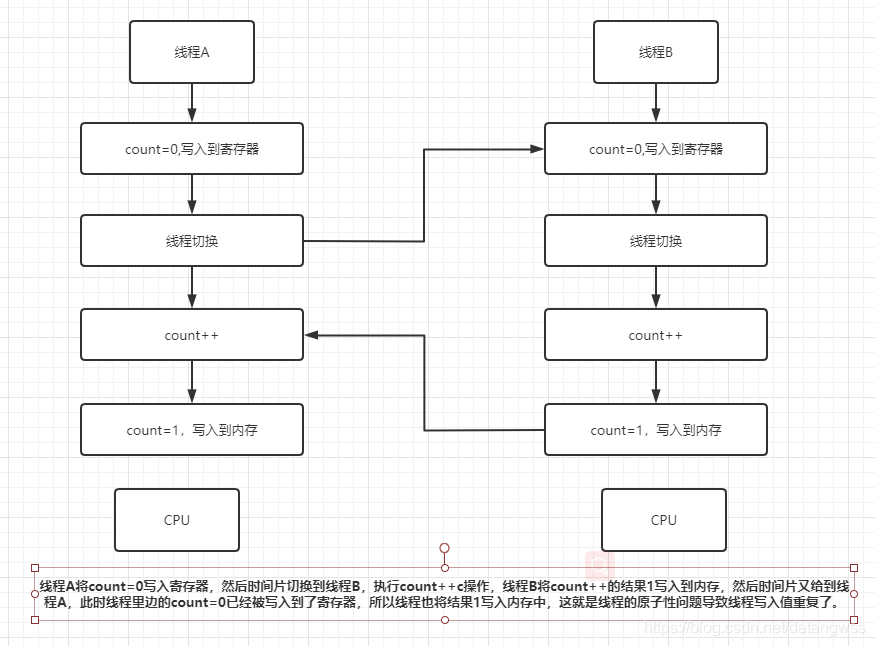 所谓线程的原子性就是:一系列或者一个指令操作是不可中断的,一但开始就不允许其他线程或者cpu中断。