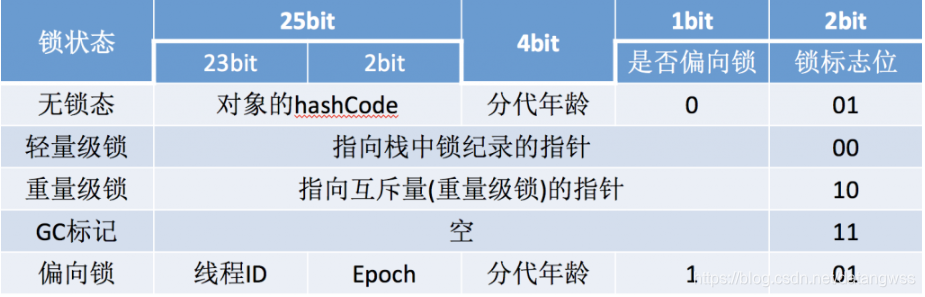 可以看到最后三位的含义 红色代表是否偏向锁,蓝色代表锁标志