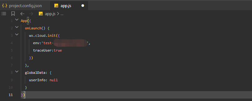 "cloudfunctionRoot": "/cloud",六、云开发环境初始化,app.js文件代码如下