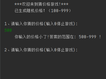 System.out.println("\n"+i+"、请输入你猜的价格(输入0停止游戏):");