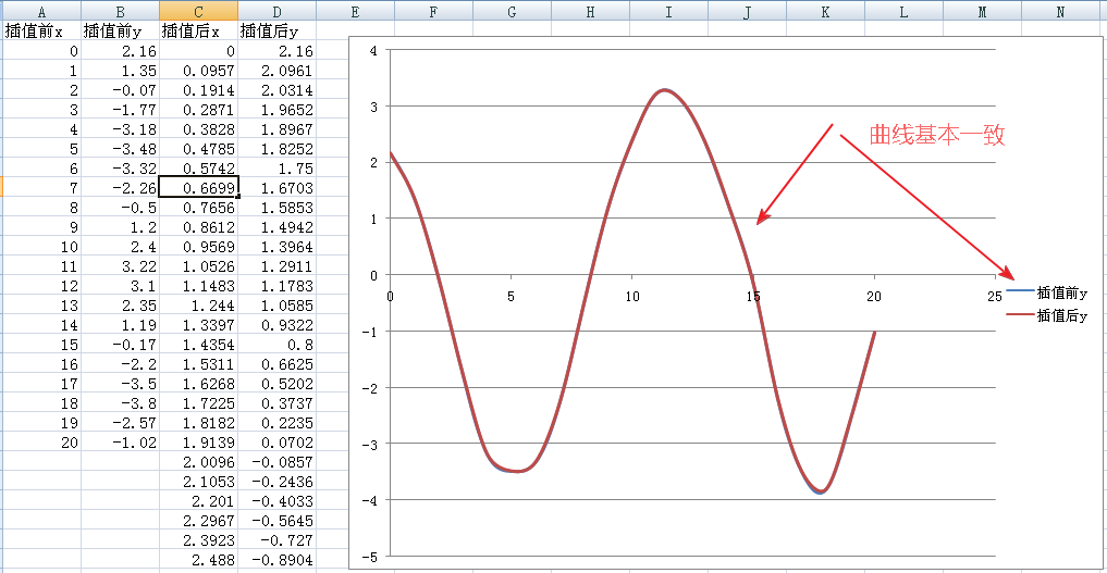 对比的图可以看出 与插值前的曲线基本一致,平滑性很好