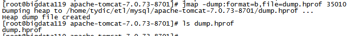 先将内存导出为文件: jmap -dump:format=b,file=dump.hprof pid