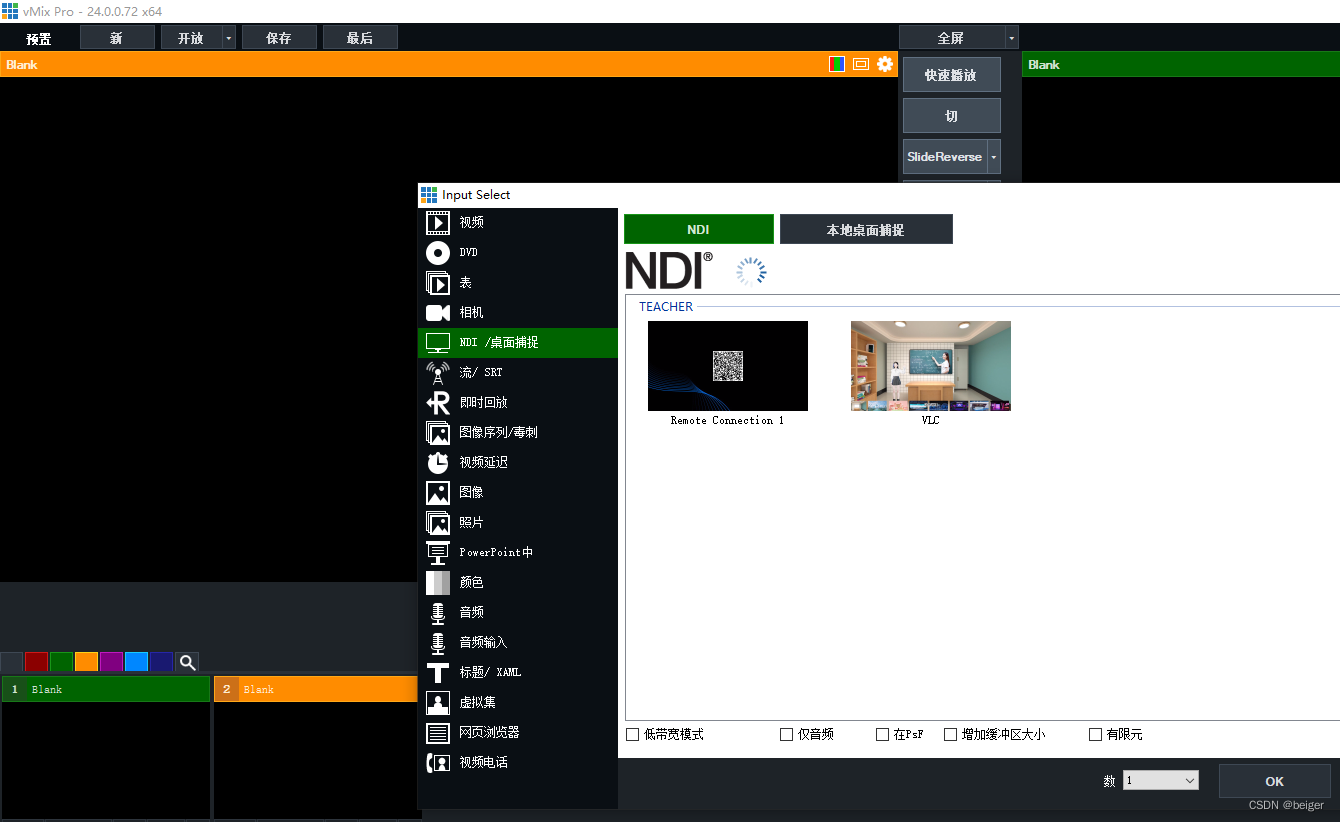 - Scan Converter:很重要!可以将本机摄像头、桌面作为NDI源