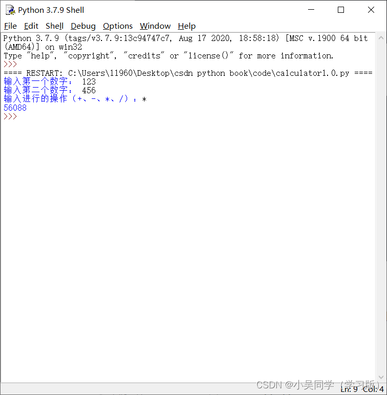 本次代码实现计算器已经完成,但还是有很多漏洞,比如只能完成两个数的运算、没有纠错处理、运算结束需重复运行等等。