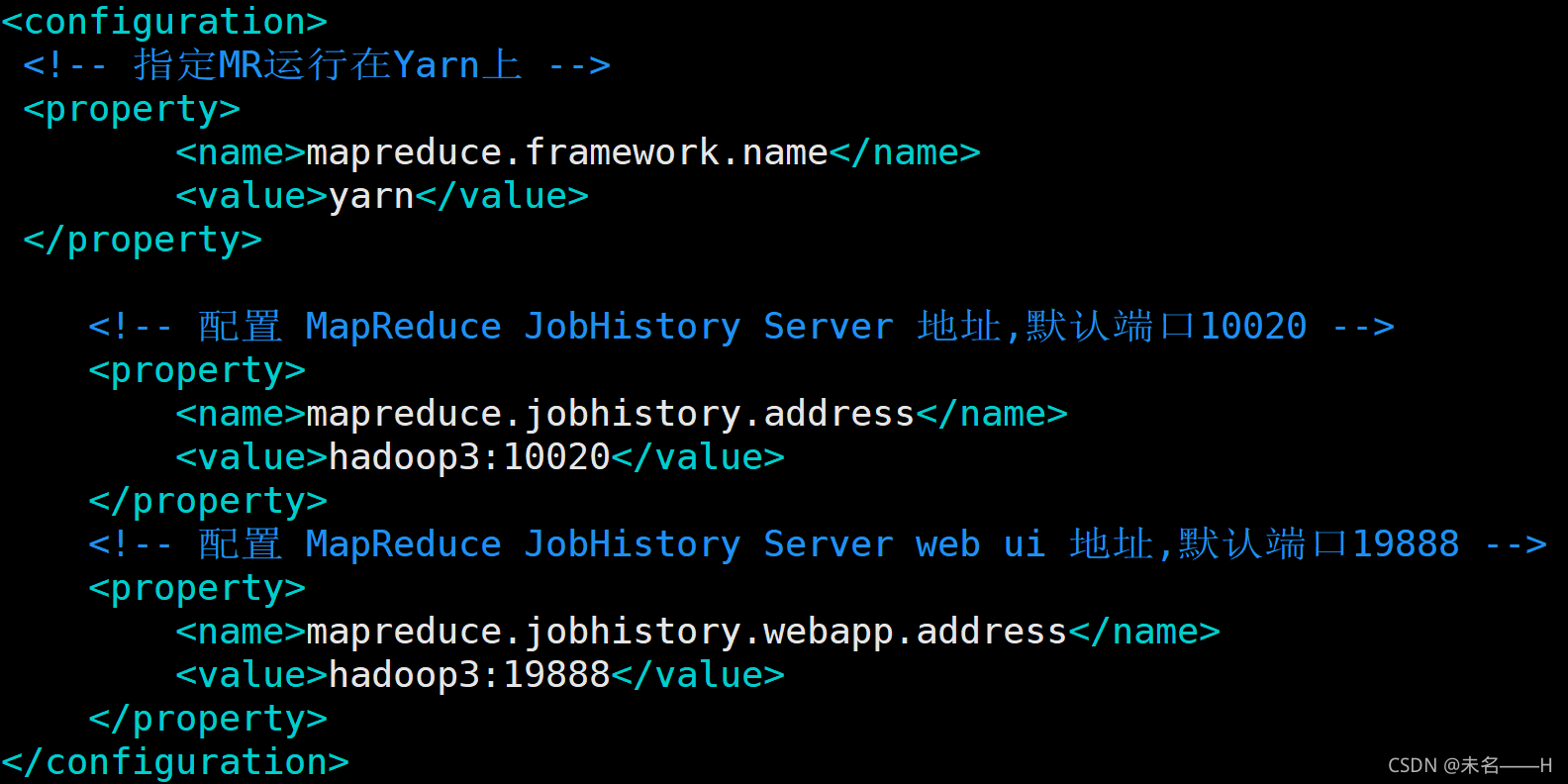 <!-- 配置 MapReduce JobHistory Server 地址,默认端口10020 -->