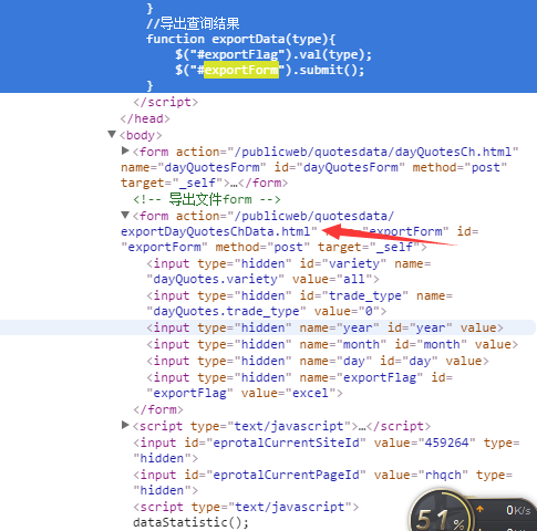 发现背后并没有下载地址,而是<a href="javascript:exportData('excel')">