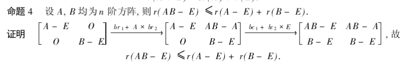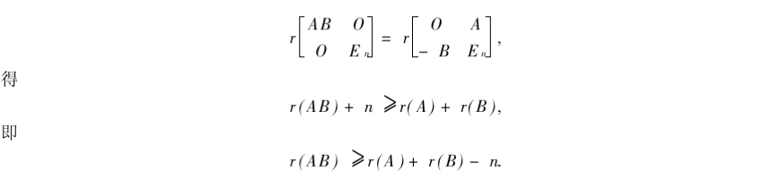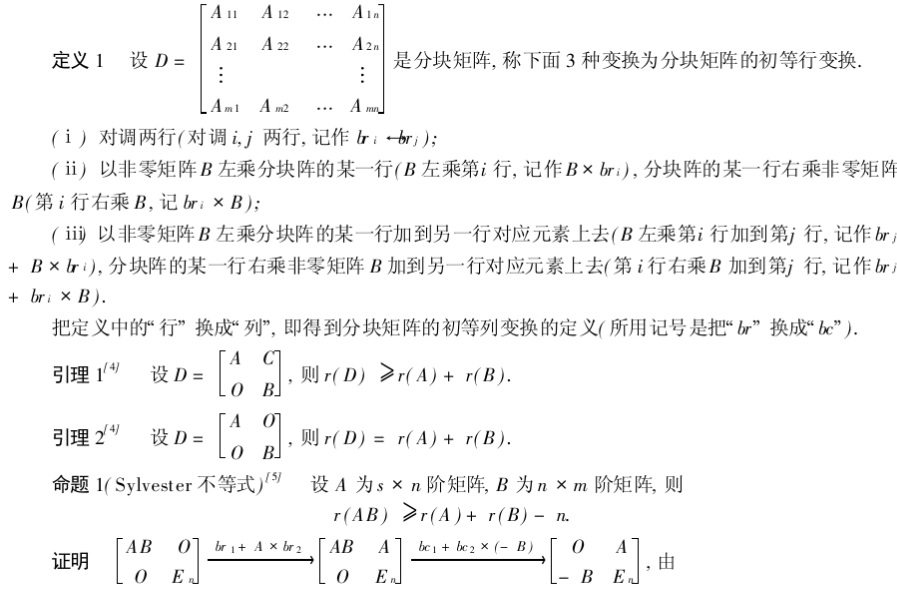 利用分块矩阵计算矩阵秩不等式 版权声明:本文为wwxy1995原创文章,遵循CC 4.0 BY-SA版权协议,转载请附上原文出处链接和本声明。原文链接:https://blog.csdn.net/wwxy1995/article/details/105599151