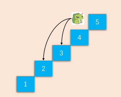 根据这个思路,假设我们要4阶楼梯,上第4阶楼梯之前只有两种情况:在第3个台阶或在第2个台阶,只要把最后跳1阶即(前面跳第3阶楼梯的方法数)加上最后跳2阶(前面跳第2阶楼梯的方法数)就可以啦!