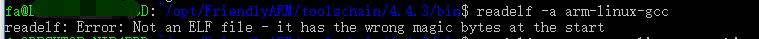 过程:通过 readelf -a arm-linux-gcc 检查程序导出表发现问题readelf 命令报错:Not an ELF file - it has the wrong magic bytes at the start 初步确定问题来源,子系统不支持原生linux文件头