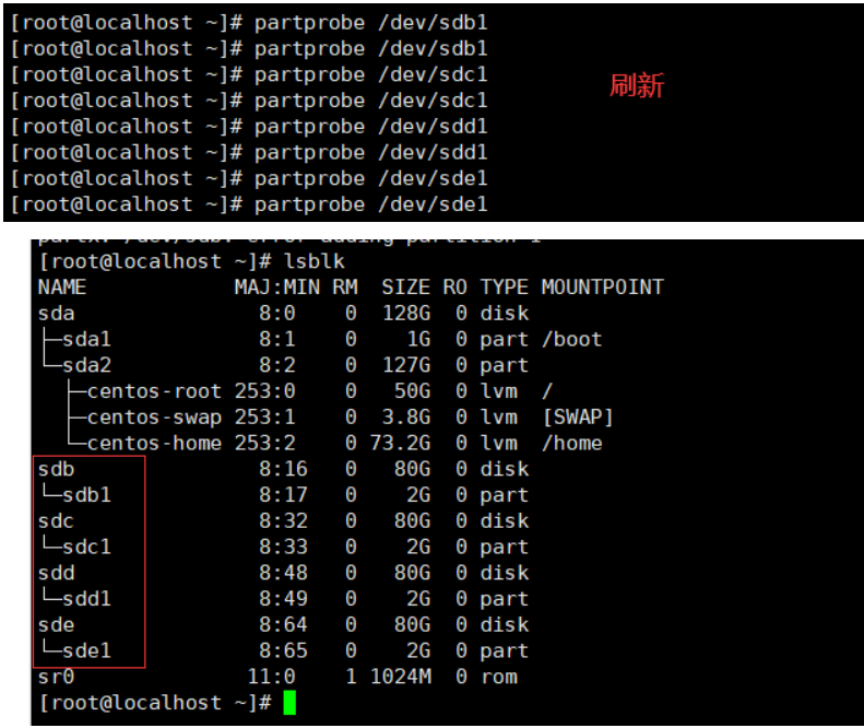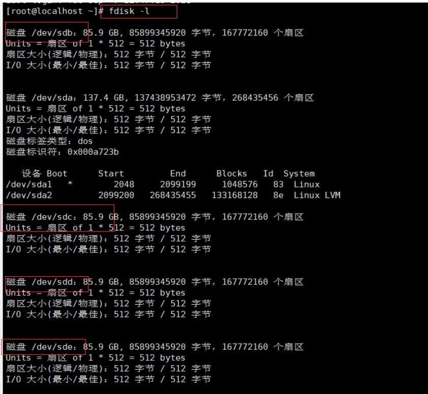为Linux服务器添加4块SCSI硬盘,并使用fdisk工具各划分出一块2GB的分区,依次为:/dev/sdb1、/dev/sdc1./dev/sdd1、/devsde1