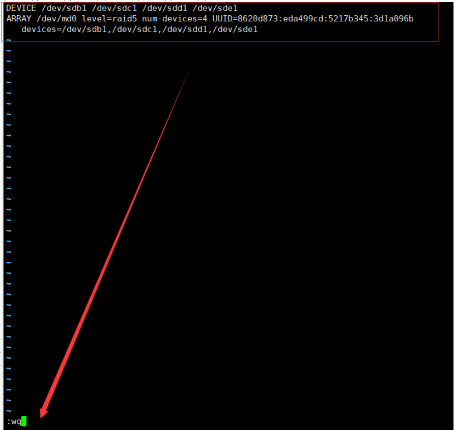 (1)建立一个文件,并将mdadm插卡信息复制进去