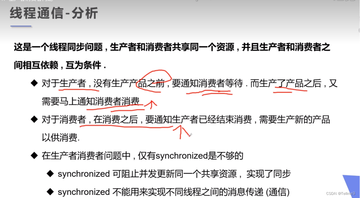 - 在这个生产者和消费者问题里面:(不同线程通信的问题)