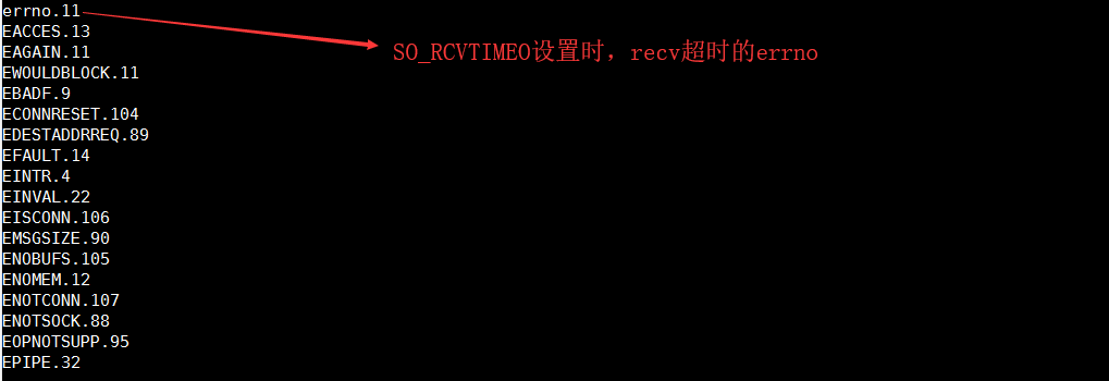 其实EAGIN是在setsockopt设置SO_RCVTIMEO或SO_SNDTIMEO后,recv或者send系列函数超时等待返回-1,此时的errno值。