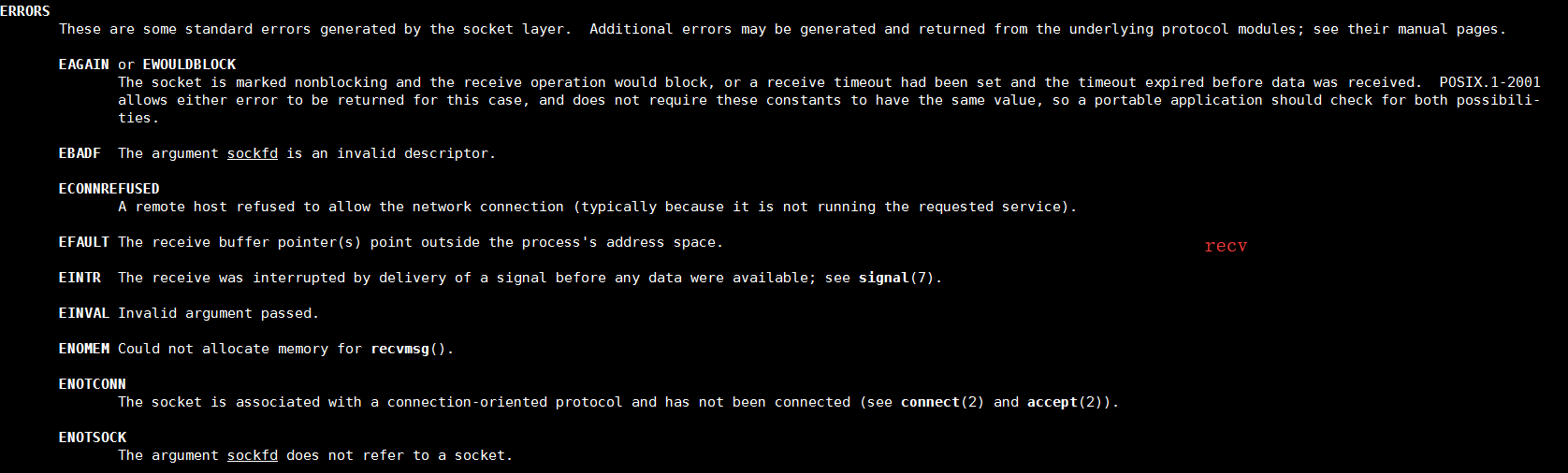 recv return -1,errno(posix):